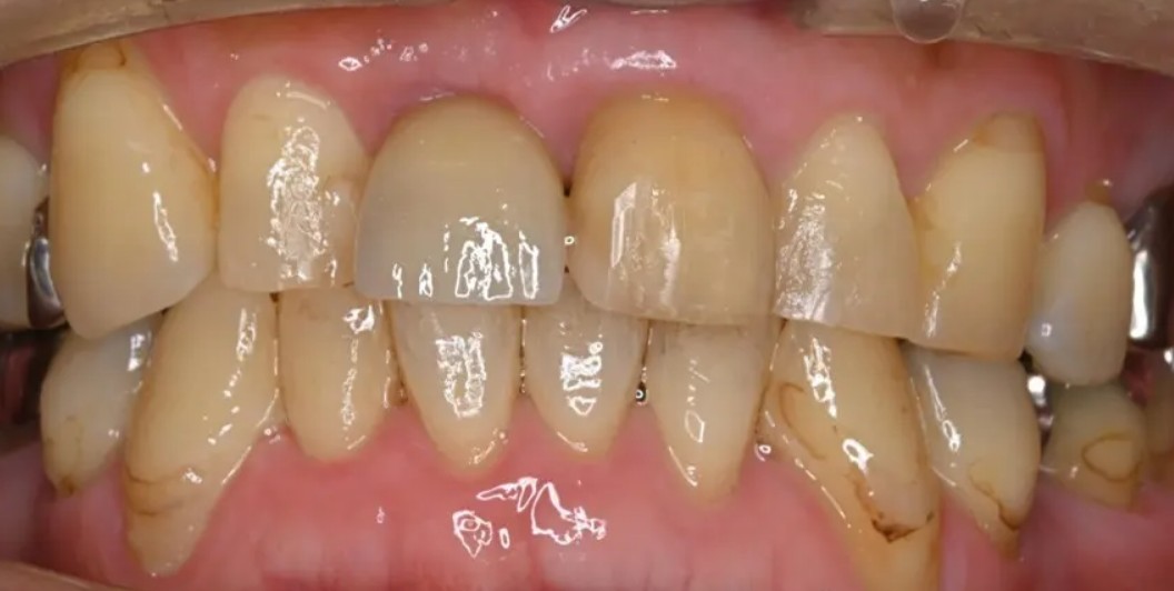 笑ったときに歯肉がやや見える「ガミースマイル気味」のため、歯肉ラインのわずかな不揃いも審美的に目立ちやすい状態でした。
